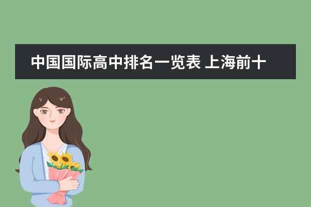 上海前十名国际高中:1. 上海中学国际部:作为上海最早的国际学校之一,上海中学国际部提供全面的国际教育,旨在培养学生成为具有全球视野的人才。