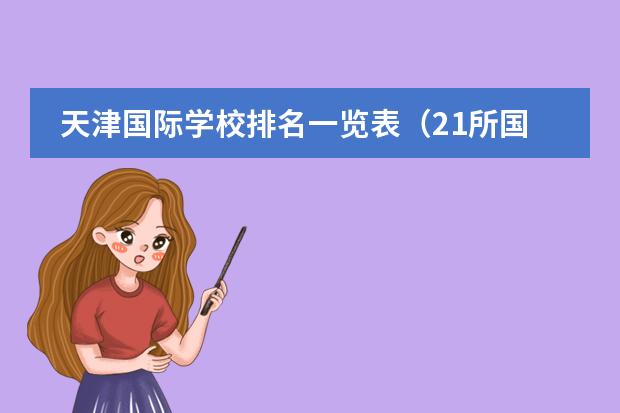 5、北京中加学校:北京市第一所中外合作的全寄宿制学校,提供普通高中及高中后加拿大高等专科学段教育。由北京师范大学附属实验中学与加拿大纽宾士域省教育部及加拿大加皇国际教育集团合作办学。以上就是金榜教育小编给大家带来的天津国际学校排名一览表(21所国际学校排名)全部内容,希望对大家有所帮助!